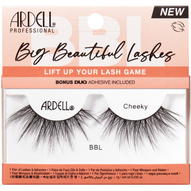 Ardell BBL Big Beautiful Lashes - Cheeky. VOLUMINOUS GETS VOLUPTUOUS! Lash to the max with Big Beautiful Lashes, our biggest, boldest, longest length collection yet. Endow lashes with voluptuous volume, captivating curves, and lengths so l-o-n-g, they virtually touch your brows! Multi-layered and lifted for bigger-than-life impact, BBL serves up the kind of sexy, sumptuous fringes you love to flutter. Take yourlook from sedate to seductive with trend-setting styles that curve in all the right places!
