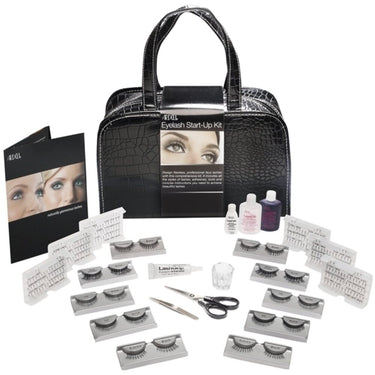Ardell Eyelash Start Up Kit Includes: 5-pr. Strip Lashes, Assorted, LashGrip Eyelash Adhesive Dark.25 oz., LashGrip Eyelash Adhe. Ardell Eyelash Start Up Kit contains everything needed for lash services. Includes: 5-pr. Strip Lashes, Assorted, LashGrip Eyelash Adhesive Dark.25 oz., LashGrip Eyelash Adhesive Clear.25 oz., 6 DuraLash Black Combo Lashes, LashTite Adhesive Dark.75 oz., LashTite Adhesive Clear.75 oz., LashFree Adhesive Solvent.2 oz., Precision tweezers, Glass dappen dish, Scissors, Instruction Booklet
