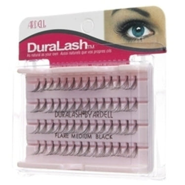 Ardell Flare Medium Black DuraLash / 1 Set. Ardell Flare Medium Black DuraLash are individual lashes fastened to your own lashes so they stay on day after day. They are weightless, permanently curled, waterproof and comfortable. Contains 56 individual lashes. 1 set.