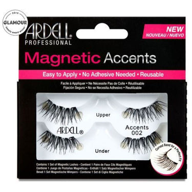 Ardell Magnetic Strip Lashes - Magnetic Accent 002 - Fuller Accent Lash With Wispies Criss-Cross Effect. Lush lashes in a flash! Ardell's Magnetic Accent Lashes feature revolutionary multi-magnet technology! We use smaller, virtually invisible magnets, placed end to end so the upper and lower lashes lock together completely and lay down seamlessly along your natural lash line. Smaller magnets + more of them = a more secure hold and more subtle appearance.