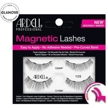 Ardell Magnetic Strip Lashes - Magnetic Lash 105. Glue is so out! Simply place and press for the flirtiest lash look - without any bulk. Our Magnetic Lash collection has a revolutionary multi-magnet technology that uses virtually invisible magnets, strategically embedded end-to-end for complete magnetic contact, so lashes lay down seamlessly along your natural lash line and don't flare out. br>