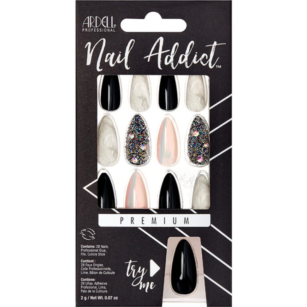 Ardell Nail Addict - Artificial Nail Set - 3D Texture - Marble & Diamonds. Statement texture & finishes is the latest nail trend that is the eye catching must-have! Recreate 3-D textures with chrome finishes with Ardell's addictive press-ons.