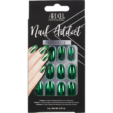 Ardell Nail Addict - Artificial Nail Set - Metallic - Green. This metallic artificial nail set is made for flaunting! Our complete kit features everything you need for a quick and easy at-home manicure upgrade.