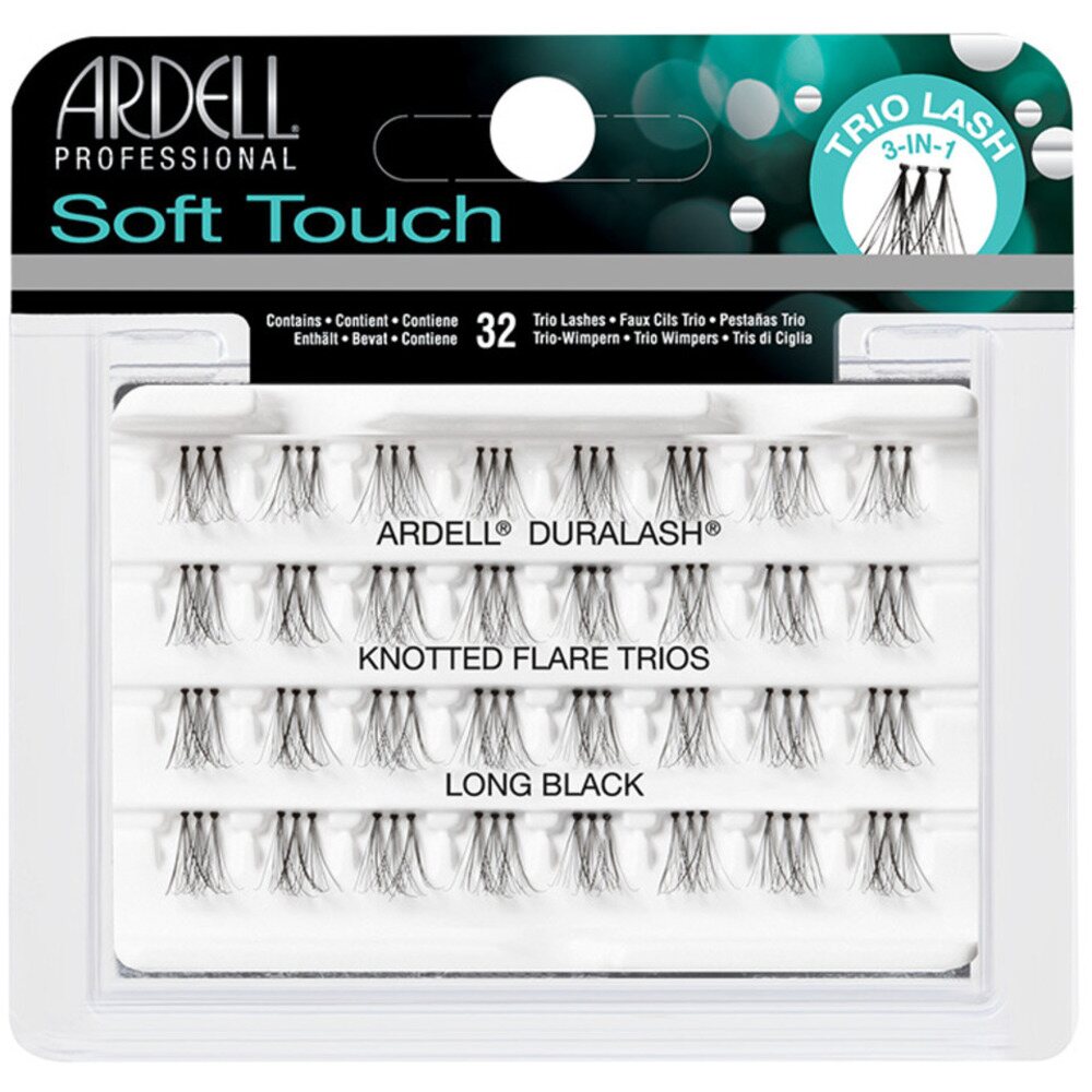 Ardell Soft Touch Knoted Flair Trios - Individuals - Long Black / 32 Trio Lashes. Ardell Soft Touch Knotted Flare Trios Individuals Long Black has uniquely designed lash cluster with tapered tips which makes application seamless along natural lashes. They offer three times the speed! Triple fast and easier than regular individual lashes. Individual Trios is an all-in-one pack for lash customization!