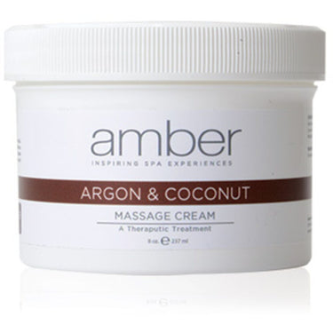 Argan & Coconut Therapeutic Massage Cream - 8 oz. Transform every massage into a rejuvenating anti-aging treatment with the luxurious Argan & Coconut Massage Cream. Crafted by Amber Products, this therapeutic formula merges the hydrating powers of Coconut and Argan Oil with the restorative properties of Soybean Oil, Aloe Vera, and Vitamin E, making it a spa essential for professionals who value both performance and indulgence.