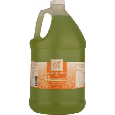 Aromaland Aromatherapy+ Massage & Body Oil - Jasmine & Clementine / 1 Gallon. This Aromatherapy+ Massage & Body Oil is created exclusively from cold pressed plant oils - rich in vitamins and unsaturated acids - and pure Essential Oils. Grapeseed, Rosehip, Sweet Almond, Safflower and Sunflower Oils are enriched with Vitamin E and C, providing smooth and nourished skin. Supports smooth glide and easy grip for deep massage. Scented and enhanced with beneficial therapeutic-grade Essential Oils of Jasmine, Clementine, and Rose that offers an exquisite, romantic, and embracing aromatherapy experience.