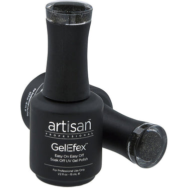 Artisan GelEfex Gel Nail Polish - Advanced Formula - Narcotic Midnight Melt - 0.5 oz (14.79 ml). Galaxy Black: A dark black colored gel nail polish with sparks of glitter for a galaxy like finish.