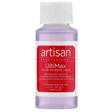 Artisan Ultimax Acrylic Nail Liquid / 1 oz. by Artisan. Premium quality, superior adhesion, very low odor and very easy to work with. Artisan UltiMax Acrylic Liquid is highly adaptable for any nail tech experience level. Teamed up with Artisan Acrylic Nail Powder, the self-leveling feature of the system makes it a breeze to sculpt, meaning minimal stroking and filing on your end. UltiMax Acrylic Liquid is nonyellowing, lift resistant and contains no MMA. Start producing flawless consistency and superior adhesion that lasts more than two weeks.