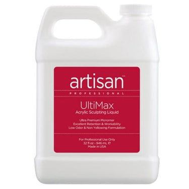 Artisan Ultimax Acrylic Nail Liquid / 32 oz. by Artisan. Premium quality, superior adhesion, very low odor and very easy to work with. Artisan UltiMax Acrylic Liquid is highly adaptable for any nail tech experience level. Teamed up with Artisan Acrylic Nail Powder, the self-leveling feature of the system makes it a breeze to sculpt, meaning minimal stroking and filing on your end. UltiMax Acrylic Liquid is nonyellowing, lift resistant and contains no MMA. Start producing flawless consistency and superior adhesion that lasts more than two weeks.