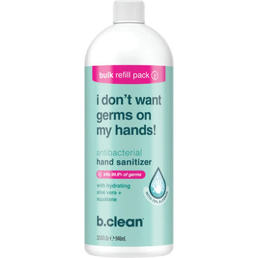 B.Tan B.Clean - I Don't Want Germs On My Hands... Antibacterial Hand Sanitizer / 32 fl. oz. - 946 mL. I don't want germs on my hands... hand sanitizer light gel - keep hands clean wherever you go!