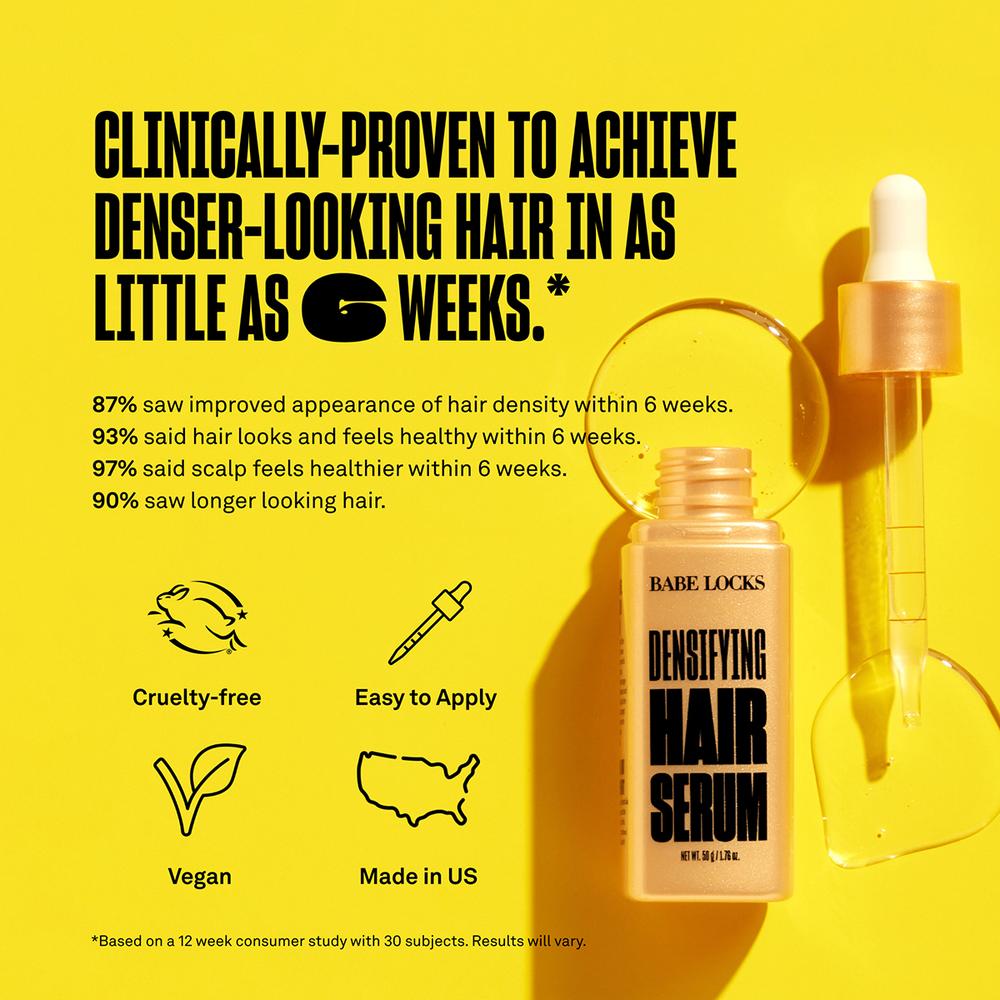 Babe Locks Densifying Hair Serum is a standout product that empowers salons and spas to offer a proven solution for hair density and scalp health. Its 3-month supply makes it a valuable investment for clients, while its clean, vegan, cruelty-free formulation aligns with modern wellness values. Crafted in the USA, this professional-grade serum can be used as part of customized scalp services or recommended as an at-home regimen to enhance long-term results.