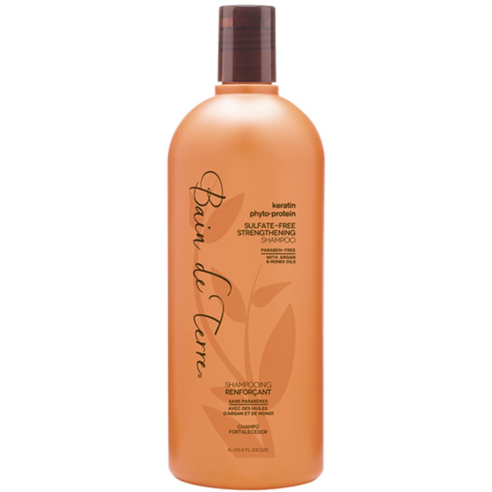 Bain De Terre Keratin Phyto-Protein Sulfate-Free Strengthening Shampoo / 1 Liter. Luxuriously cleanse & strengthen weak, fragile hair while replenishing hairs natural protein. Defend against future damage* with a unique, plant-derived protein blend.