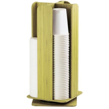 Bamboo Revolving Dispenser. Eco-smart and attractive, this Bamboo Revolving Lid/Cup Dispenser brings organization and elegance to any spa, salon, or professional environment. Made from sustainable bamboo, it is the perfect combination of style and function, offering a streamlined way to store and access your cups or lids. Whether you're serving refreshments to clients or keeping your space neat and tidy, this dispenser delivers exceptional performance and a natural, polished look.