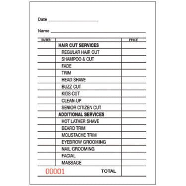 Barber Check Pads - 100 Numbered Checks Per Pad - 5-1/2" x 3-3/4"W / 12 Pack of Pads. Check pads help barbers stay organized and maintain professionalism while billing customers. Each page features separate columns for barber service, and price. 100 numbered checks per pad 5-1/2" x 3-3/4"W.