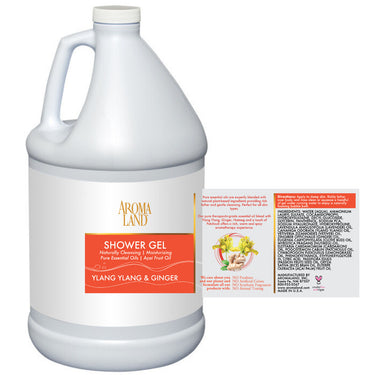 Bath & Shower Gel - Ylang Ylang & Ginger / 1 Gallon. Enjoy a new shower and bath experience with this Aromatherapy+ Bath & Shower Gel, inspiring the mind with pure Essential Oils. This Shower Gel offers Coconut's fine lather and long-lasting foam, and can be used as a shower gel, bubble bath or hand soap for gentle cleansing and care. It balances the oil production of the skin, benefiting both dry as well as oily skin, leaving it naturally beautiful and healthy.