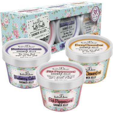 Bella & Bear Tutti Frutti Shower Jellies Set. Who needs shower gel when you can have shower jelly. Each of our delightful jellies will leave you with a zing in your step. The revitalizing fruity scents will awaken your mind and body leaving you feeling renewed and refreshed. Start your morning with a generous helping of fruit. Because we all know a fruity breakfast is the way to go.