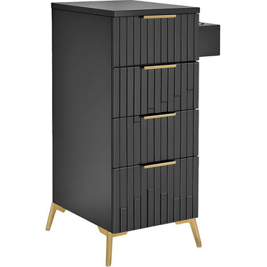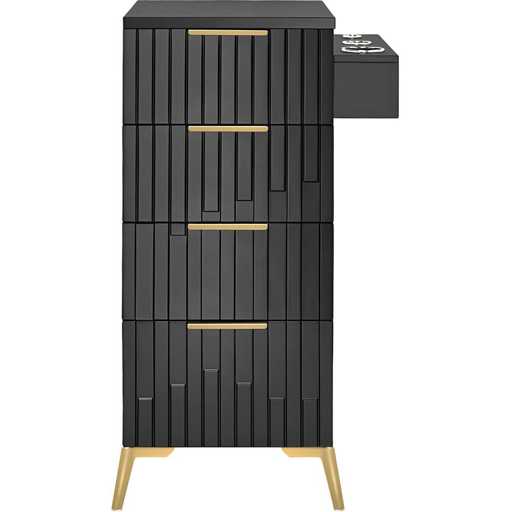 Elevate your salon’s functionality and style with the Belle Free-Standing Styling Station Cabinet in Black by Deco Salon Furniture. Designed to blend modern sophistication with practical utility, this cabinet is crafted from solid wood, ensuring durability and a premium aesthetic. Its sleek black finish, complemented by gold accents, adds a touch of elegance to any salon or spa environment. Featuring four spacious storage drawers and a convenient tool holder, the Belle Styling Station keeps your tools organized and within easy reach, enabling you to deliver exceptional service to your clients with efficiency and flair.