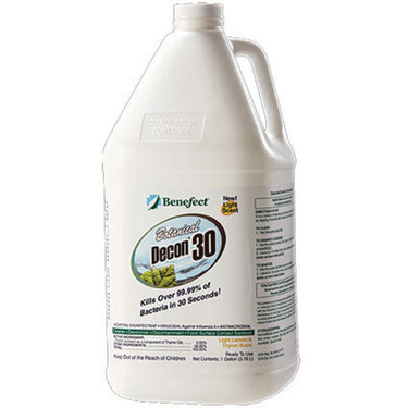 Benefect Decon 30 Disinfectant Cleaner & Sanitizer / 4 oz. Benefect Decon 30 is a new innovative one-step disinfectant cleaner at an economical price. With a light scent, Benefect Decon 30 kills over 99.99% of bacteria in 30 seconds. Does not conatin synthetic fragrances, dyes, or bleach.
