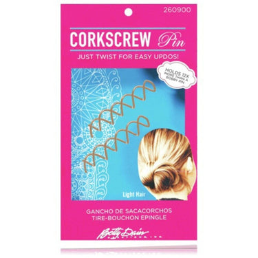 Betty Dain Corkscrew Pin Light Hair. Betty Dain Corkscrew Pin Light Hair. Tired of spending hours creating the perfect updo for a special event, only to have it fall out before the night is over? Betty Dain Corkscrew Pins make updos easy without the hassle. Twist the corkscrews into the hair and create beautiful buns and twists in minutes. The Corkscrew pin holds 12 times more hair than a bobby pin, allowing you to create beautiful looks that last. It's strong enough to work with any hair type and a must have for any stylist.