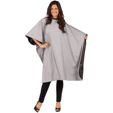 Betty Dain Reversible Cape. Are you tired of having to switch out your styling and chemical cap every time you work on a client? Look no further than the Betty Dain Reversible Cape. This versatile cape features a styling cape on one side and a chemical cape on the other, all in one convenient package. With a snap closure, it's easy to switch from one side to the other, allowing you to work quickly and efficiently.