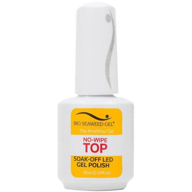Bio Seaweed Gel - NO-WIPE TOP GEL / 0.5 oz by Bio Seaweed Gel. Quick no-wipe formula. Long-lasting glass shine finish with no staining or cracking for chip-free, high shine gel nails. Cures to the touch with no tacky inhibition layer, no alcohol or cleansers required.