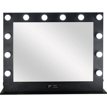Black 12 Dimmable LED Light Metal Body And Glass Base Hollywood XL Vanity Mirror with Bluetooth, USB, Speakers And Mp3 by TruCase