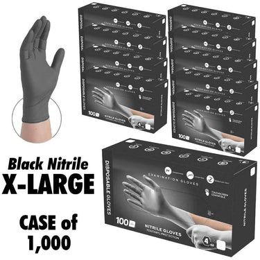 Black Nitrile Disposable Exam Gloves - X-LARGE / Black Color / 3.5 Mil Thickness / 100 per Box / Case of 10 Boxes = 1,000 Gloves