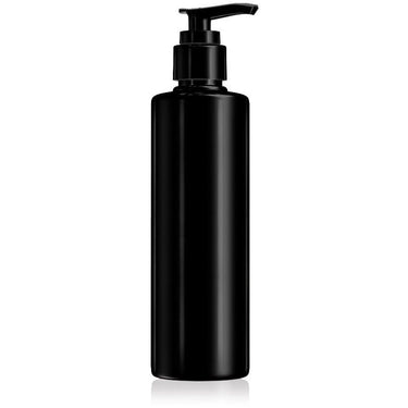 Black Plastic Cylinder Bottle with Lotion Pump / 8.33 oz. - 250 mL. - Case of 80 Bottles. Easily dispense a variety of liquid or cream formulations with this 8.33 oz. (250 ml) assembled bottle with lotion pump.