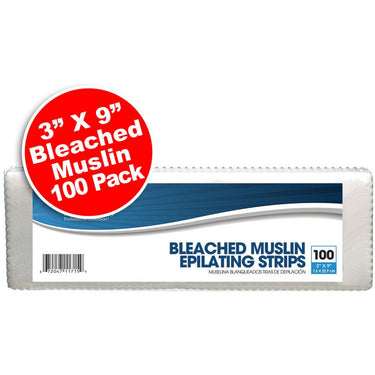 Bleached Muslin Epilating Strips - 3" x 9" / 100 Pack. Bleached Muslin Epilating Strips. Jagged edge. 3" x 9", 100 Pack.