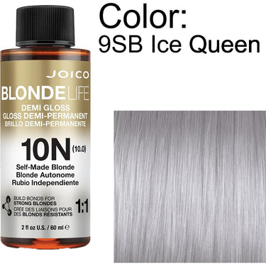 Joico Blonde Life Demi Gloss - 9SB Ice Queen. Deliver luminous shine, brass-neutralizing brilliance, and bond-building strength with Joico Blonde Life Demi Gloss—a must-have tool for every blonde expert’s arsenal. Designed to tone, glaze, and gloss in one step, this ammonia-free liquid toner brings together the artistry of customizable blonde tones with the science of bond-repair and conditioning. Whether you’re refining a platinum finish, correcting warmth, or reviving a faded blonde, Blonde Life Demi Gloss offers endless versatility, stunning results, and healthy, radiant hair that leaves clients glowing.