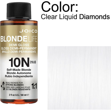 Joico Blonde Life Demi Gloss - Clear Liquid Diamonds. Deliver luminous shine, brass-neutralizing brilliance, and bond-building strength with Joico Blonde Life Demi Gloss—a must-have tool for every blonde expert’s arsenal. Designed to tone, glaze, and gloss in one step, this ammonia-free liquid toner brings together the artistry of customizable blonde tones with the science of bond-repair and conditioning. Whether you’re refining a platinum finish, correcting warmth, or reviving a faded blonde, Blonde Life Demi Gloss offers endless versatility, stunning results, and healthy, radiant hair that leaves clients glowing.