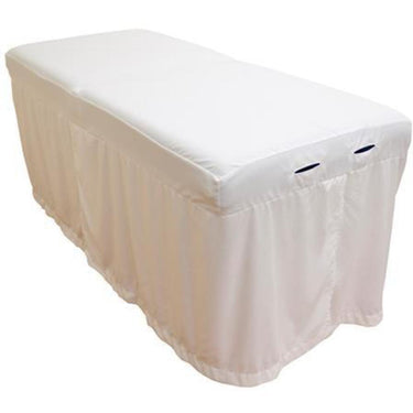 Body Linen Tranquility Microfiber Massage Table Skirts - 32.25"W x 73"L x 24"H. 120 GSM - Stain Resistant / Color: White.