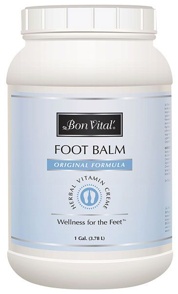 Bon Vital Foot Balm / 1 Gallon. Bon Vital' Foot Balm has been providing wellness for American feet for over eleven years, but this effective product has an even longer history. Bon Vital' Foot Balm is made from the original formula developed more than 60 years ago, originating from the Austrian Alpine region near Salzburg. Most foot balms available in the United States are basically a hand lotion scented with a few drops of peppermint oil. Our Original Formula Bon Vital' Foot Balm is a true Foot Balm, not just scented lotion.