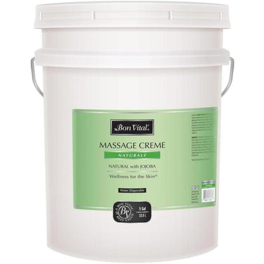 Bon Vital Naturale Massage Cre with Jojoba - 5 Gallons. The Bon Vital Naturale Massage Cre is the perfect choice for spas and salons looking to elevate their massage experience. This luxurious massage cre is carefully crafted with all-natural ingredients, including the enriching power of jojoba oil. Its smooth and creamy texture allows for effortless glide, while providing deep nourishment for the skin. Designed for a variety of massage modalities, it is ideal for professional use, making it an excellent addition to your spa's offerings.
