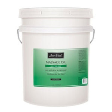 Bon Vital Naturale Massage Oil / 5 Gallons. Bon Vital' Natural Massage Oil is the perfect nut free blend of jojoba, safflower, grapeseed, apricot and peach kernal oils. It has 100% all natural organic ingredients enriched with sea algae, japanese green tea and hops extracts. Bon Vital' Naturale Massage Oil is easily absorbed and provides the perfect glide to leave the skin feeling soft and smooth. Completely water dispersible for easy cleanup of linens and fabrics. Available in 8 oz bottle with pump, 1 gallon container, or 5 gallon container. Unscented.