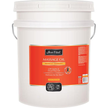 Bon Vital Original Massage Oil / 5 Gallon. Bon Vital' Original Massage Oil is formulated for the perfect massage and easy cleanup of linens and fabrics. Smooth, silky, and water dispersible. Clients will love the way your hands glide over the skin. A high quality product, with economy in mind. Unscented.