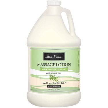 Bon Vital Therapeutic Touch Massage Lotion with Olive Oil - 1 Gallon. Bon Vital's Therapeutic Touch Massage Lotion is the ideal solution for professionals looking to enhance their clients' massage experience. With a unique formula enriched with olive oil and a blend of premium oils, this lotion provides superior glide for a variety of massage techniques, including Swedish and deep tissue modalities. The absence of nut oils makes it a safe choice for those with sensitivities, while the completely unscented, paraben-free formula ensures it meets the needs of clients with fragrance allergies or preferences for unscented products.