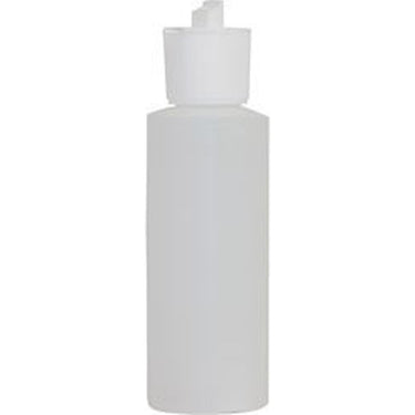 Bottle With Flip Top Cap 4 oz. This 4 oz bottle with cap is made of HDPE (high-density polyethylene, recycle code 2) plastic.
