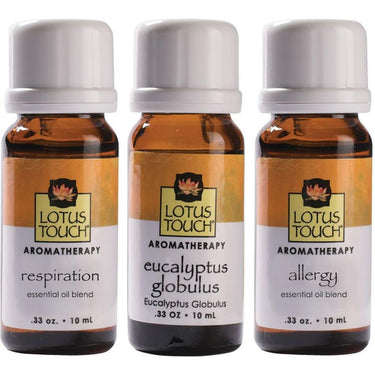 Breathe Easy Essential Oil Trio / Includes Eucalyptus Globulus (10 mL.), Allergy Blend (10 mL.), Respiration Blend (10ml) by Lotus Touch