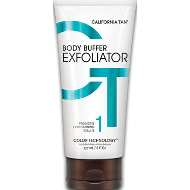 California Tan Body Buffer Exfoliator / 6 fl. oz. - 177 mL. Buffers skin allowing for even, long lasting sunless results. Moisturizes skin preparing it for color. Softens and soothes the skin for a luscious feel. Fragrance: Fresh & Sunny.