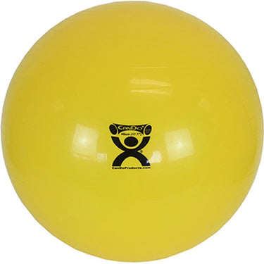 Cando Inflatable Exercise Ball 45cm Yellow. Cando Inflatable Exercise Balls The Cando balls have a non-slip PVC vinyl surface that is ribbed for extra security. The balls may be "under" inflated to give a soft, mushy feel or "over" inflated for a firm, bouncy feel. Balls can support up to 600 pounds (275kg) and come in a polybag.