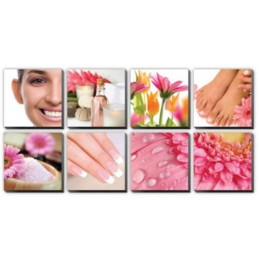 Canvas Murals - Daisy Emsemble by Alfalfa. Canvas Murals - Daisy Emsemble. Enhance your salon with these beautiful stretched canvas murals. Each set comes in 8 piece ensemble. Choose your mood, choose your color, choose the set that fit your salon best. Each of the 8 pieces measures: 24" x 24". Use them together as a group, or separate.