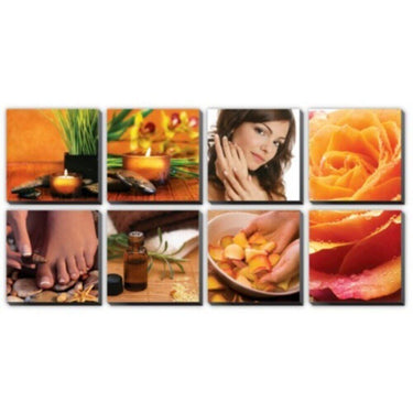 Canvas Murals - Golden Spa Ensemble by Alfalfa. Canvas Murals - Golden Spa Ensemble. Enhance your salon with these beautiful stretched canvas murals. Each set comes in 8 piece ensemble. Choose your mood, choose your color, choose the set that fit your salon best. Each of the 8 pieces measures: 24" x 24". Use them together as a group, or separate.