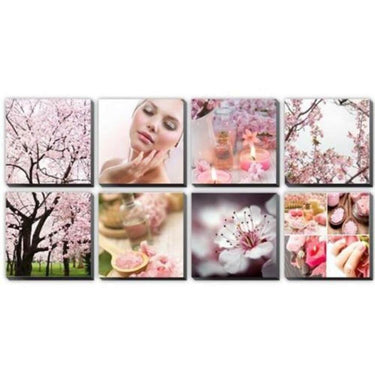 Canvas Murals - Pink Cherry Blossoms Ensemble by Alfalfa. Canvas Murals - Pink Cherry Blossoms Ensemble. Enhance your salon with these beautiful stretched canvas murals. Each set comes in 8 piece ensemble. Choose your mood, choose your color, choose the set that fit your salon best. Each of the 8 pieces measures: 24" x 24". Use them together as a group, or separate.