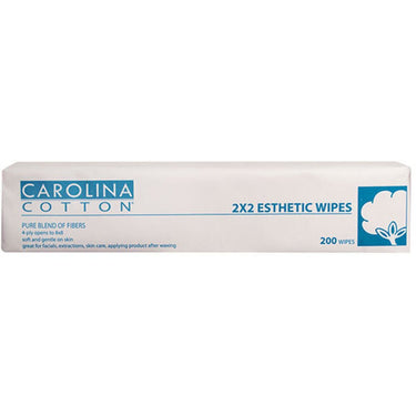Carolina 2" x 2" Esthetic Wipes / 200 Pack by Carolina Cotton. Carolina Cotton's 2x2 cotton wipes come in a sleeve with 200 wipes. Pure 100% cotton that is absorbent. Use to clean skin before waxing on the face or body.