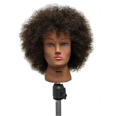 Celebrity Naomi Budget Afro Manikin / 20" Brown. Transform your client's hair into a work of art with our Celebrity Naomi Budget Afro Manikin. Made from 100% permed human hair, this manikin boasts a stunning 20" brown afro that will leave your clients in awe. The natural neck and facial make-up add to the realism of the manikin, making it the perfect tool to showcase your hairstyling skills. Whether you're a seasoned pro or just starting out, this manikin will take your practice to the next level. Don't settle for less than the best - upgrade your salon experience with the Celebrity Naomi Budget Afro Manikin today.