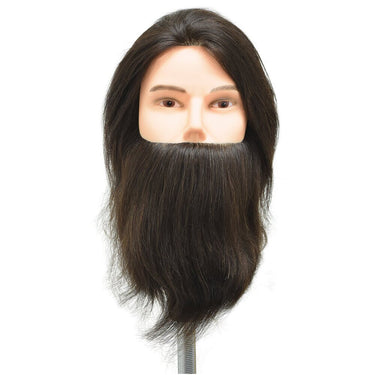 Celebrity Ryan Deluxe Bearded Human Hair Male Manikin / 20" Brown Hair. Ryan provides student with a realistic tool to practice many style and techniques for styling men's hair and beards. Features 20" of long brown extra thick hair with a full beard. Ryan has a natural growth pattern that mimics the direction of human hair grown.
