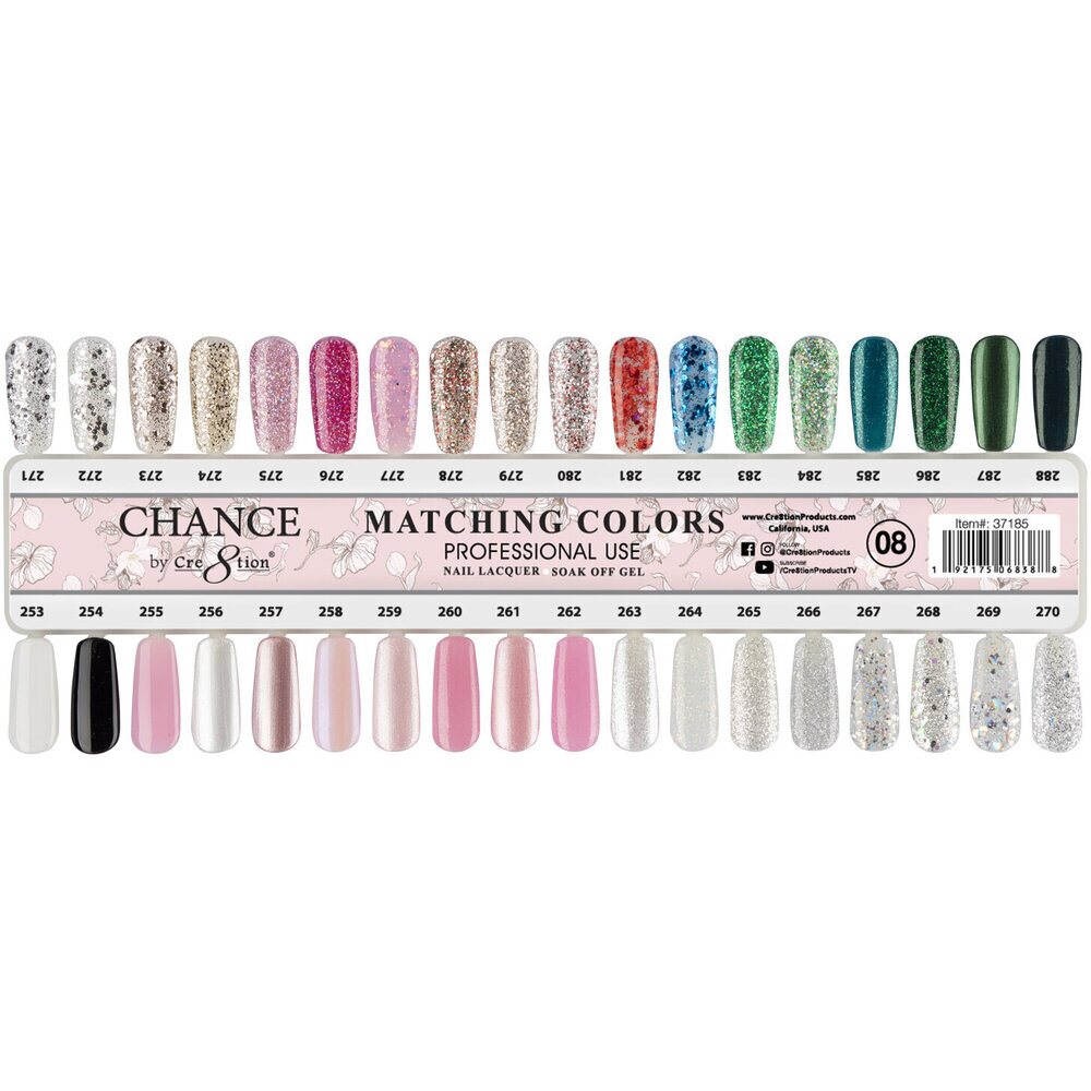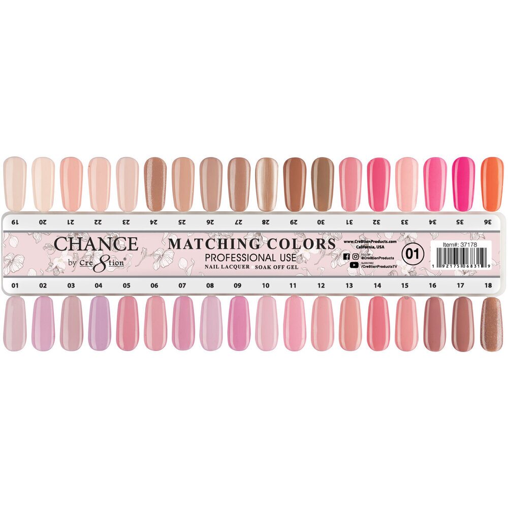 Chance Duo Soak Off Gel Polish + Nail Lacquer - 0.5 oz. Each / #018 by Cre8tion by Cre8tion. Chance Duo Gel & Nail Lacquer / Gel & Nail Lacquer .5 oz. each. Available 288 colors.