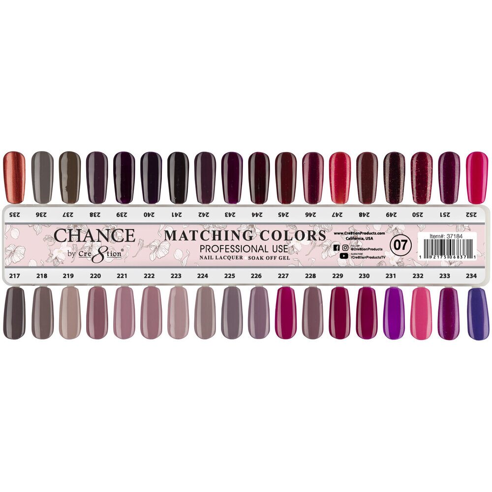 Chance Duo Soak Off Gel Polish + Nail Lacquer - 0.5 oz. Each / #080 by Cre8tion by Cre8tion. Chance Duo Gel & Nail Lacquer / Gel & Nail Lacquer .5 oz. each. Available 288 colors.