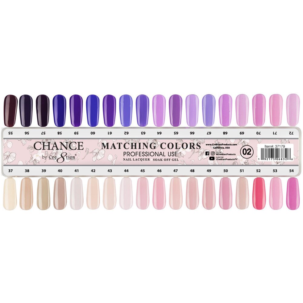 Chance Duo Soak Off Gel Polish + Nail Lacquer - 0.5 oz. Each / #133 by Cre8tion by Cre8tion. Chance Duo Gel & Nail Lacquer / Gel & Nail Lacquer .5 oz. each. Available 288 colors.
